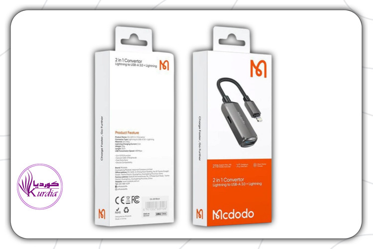 مبدل آیفون به پورت شارژ و USB مک دودو Mcdodo CA-2690 Lightning to OTG and Charger Adapter میتوان گفت تبدیل هایی میباشند که درگاه های گوشی شما را به یک یا چند درگاه دیگر تبدیل میکند. با استفاده از تبدیل لایتنینگ Mcdodo CA-2690 هم میتوانید اتصال کیبورد، موس و فلش و غیره به دستگاه خود، از طریق پورت دیگر دستگاه های خود را به شارژ متصل نمایید. این محصول دارای کابلی حدود 13 سانتی متر است که دو درگاه برای اتصال به صورت همزمان پورت شارژ لایتنینگ(آیفونی) و پورت USB3.0 وجود داشته که هم به صورت تکی و هم به صورت همزمان میتوانید استفاده نمایید. از ویژگی های منحصر به فرد این محصول اتصال هارد دیسک تا حداکثر 2 ترابایت است که دیگر افراد نیازی نیست نگران پر شدن حافظه گوشی خود باشند.