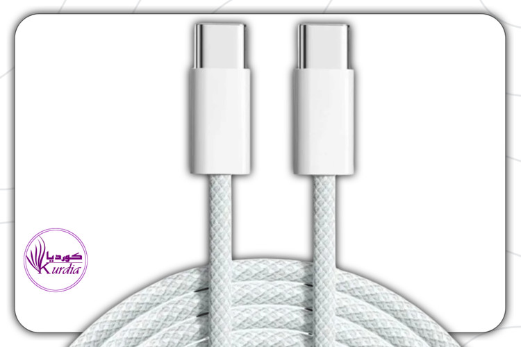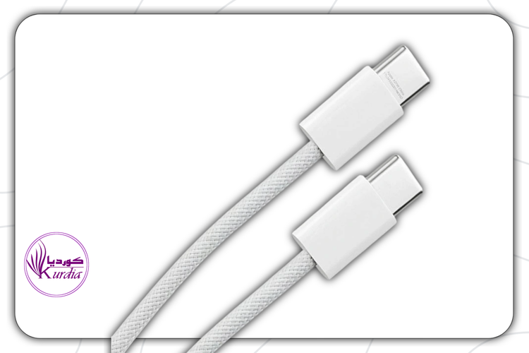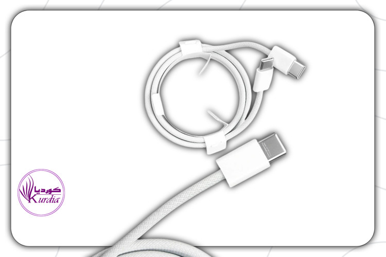 کابل شارژ دو سر تایپ سی ایفون 15 در ظاهری جدید و از جنس رویه کنفی داخل جعبه گوشی ایفون 15 ، 15پرو و ایفون 15 پرومکس قرار گرفت.