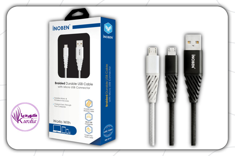 کابل «آینوبن» از جنس کنفی به اسم تجاری Baraidedاز نوع microUSB است .این نوع کابل برای شارژ بسیاری از گوشیهای موبایل و تبلت های اندرویدی بهکار میرود.این کابل علاوه بر شارژ برای انتقال اطلاعات نیز کاربرد دارد و شما میتوانید اطلاعات و فایلهای خود را به وسیله کابل میکرو یو اس بی آینوبن با دستگاهی چون لپتاپ یا رایانه رومیزی به اشتراک بگذارید. کابل Braided ( کنفی ) آینوبن دارای روکش کنفی از جنس الیاف طناب کوه نوردی بوده که به دلیل روکش بافته شده در برابر گره خوردن و در هم پیچیدن مقاومت کرده و با توجه به طول آن این مسئله اهمیت بیشتری دارد. طول کابل کنفی آینوبن برابر 120 سانتیمتر است و با توجه به این طول ممکن است به مشکل گره خوردن دچار شود. اما این محصول آینوبن (INOBEN) خوشبختانه به شکلی ساخته شده است که تا حد امکان مشکل گره خوردن و در هم پیچیدن اتفاق نیفتد. باید توجه داشت انواع هدفونها و هدست های بیسیم بهوسیله کابل microUSB شارژ میشوند. این موضوع در بسیاری از لوازم بلوتوثی دیگر هم صدق میکند و انواع پاوربانک ها هم از درگاه microUSB بهره میبرند. بنابراین یک کابل microUSB بسیار میتواند کارآمد باشد و حتی اگر کابل اصلی گوشی موبایل یا تبلت خود را در اختیار دارید هم استفاده از یک کابل دوم به سالم ماندن آن کمک میکند. رشته های داخلی کابل از جنس مس بوده و باعث میگردد شدت شارژ و انتقال اطلاعات در کابل افزایش یابد.کانکتورهای کابل ( سری ) از جنس آلومینیومی ساخته شده که باعث افزایش طول عمر محصول میگردد.ضمنا درقسمت میکرو کابل با توجه به استفاده از تکنولوژی MD818 به شما این امکان را میدهد که حتی با کاورهای غیر اورجینال بتوانید گوشی خود را بدون درآوردن کاور شارژ فرمایید.