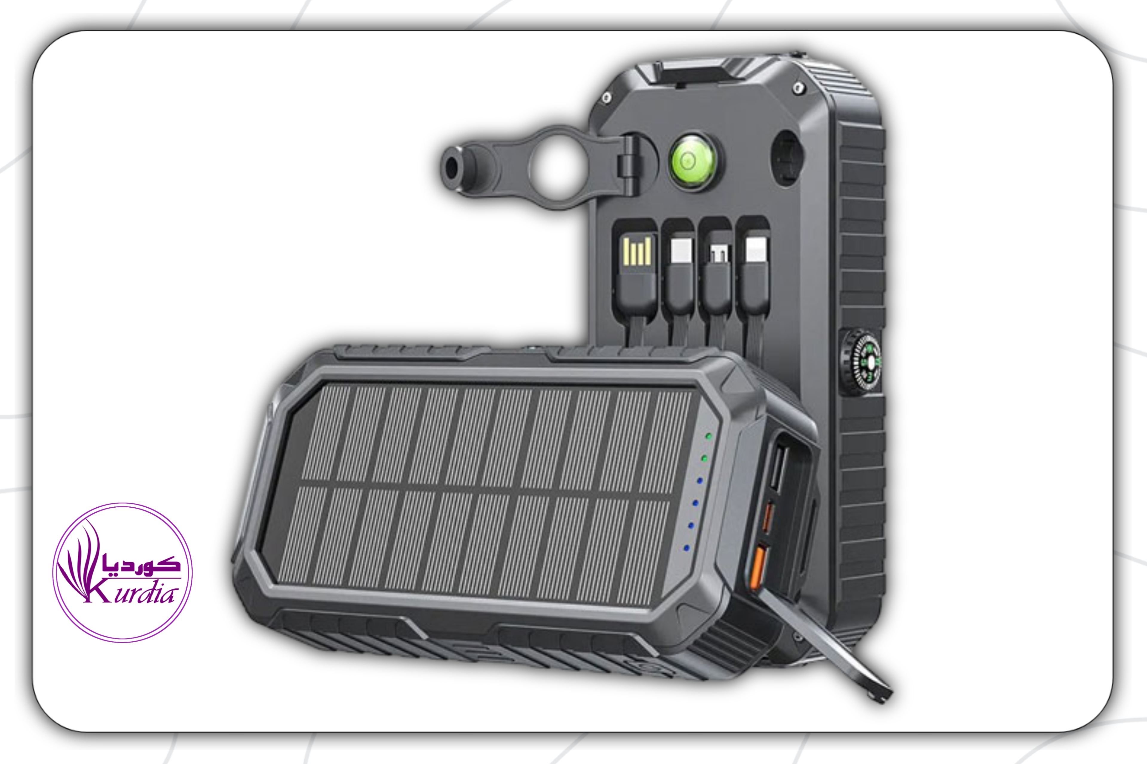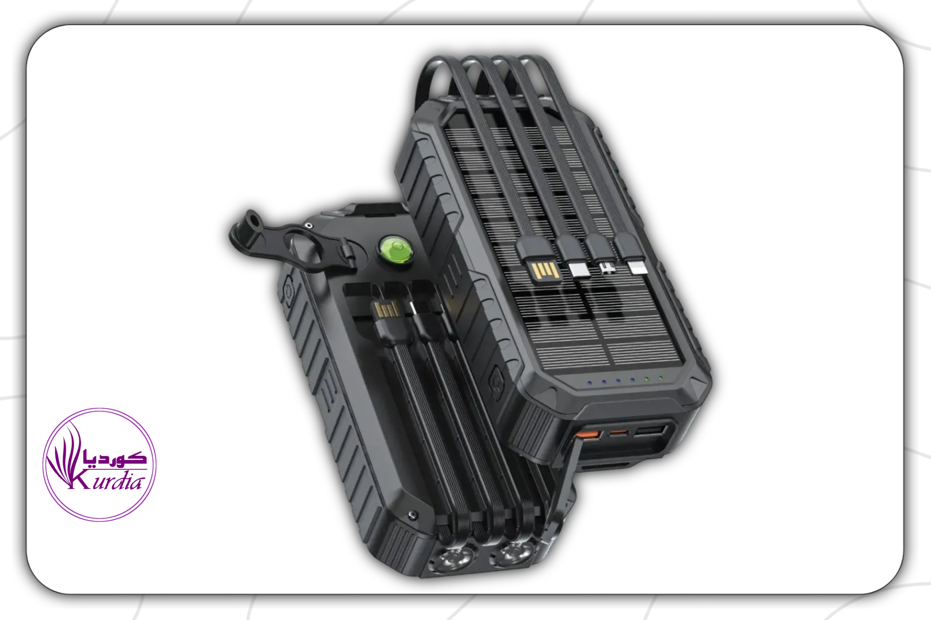 قابلیت شارژ پاوربانک از 4 طریق (خورشیدی/کابل متصل/درگاه تایپ سی/میل لنگ دستی)