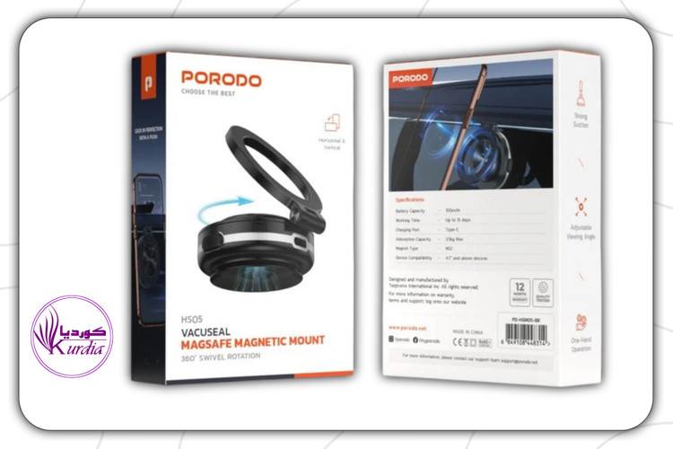 با پایه مغناطیسی Porodo HS۰۵ Vacuseal MagSafe می توان دستگاه شما را با خیال راحت و انعطاف پذیر انجام داد. مکش قوی موقعیت خود را به صورت افقی یا عمودی حفظ می کند و تنظیمی برای زاویه دید بهینه وجود دارد که عملکرد یک دست را ارائه می دهد. بنابراین، برای استفاده های سنگین ایده آل خواهد بود زیرا ظرفیت باتری ۱۰۰ میلی آمپر ساعتی برای ۱۵ روز زمان کار دارد. راندمان شارژ Type-C این محصول را افزایش می دهد زیرا می تواند حداکثر ۳.۵ کیلوگرم بارگیری کند. آهنرباهای N۵۲ به آن چسبندگی محکم و قابل اعتمادی می دهند. اگرچه طولانی است، اما عملکرد و کاربردی بودن این دستگاه برای استفاده روزمره برای دستگاهها از ۴.۷ اینچ به بالا است.