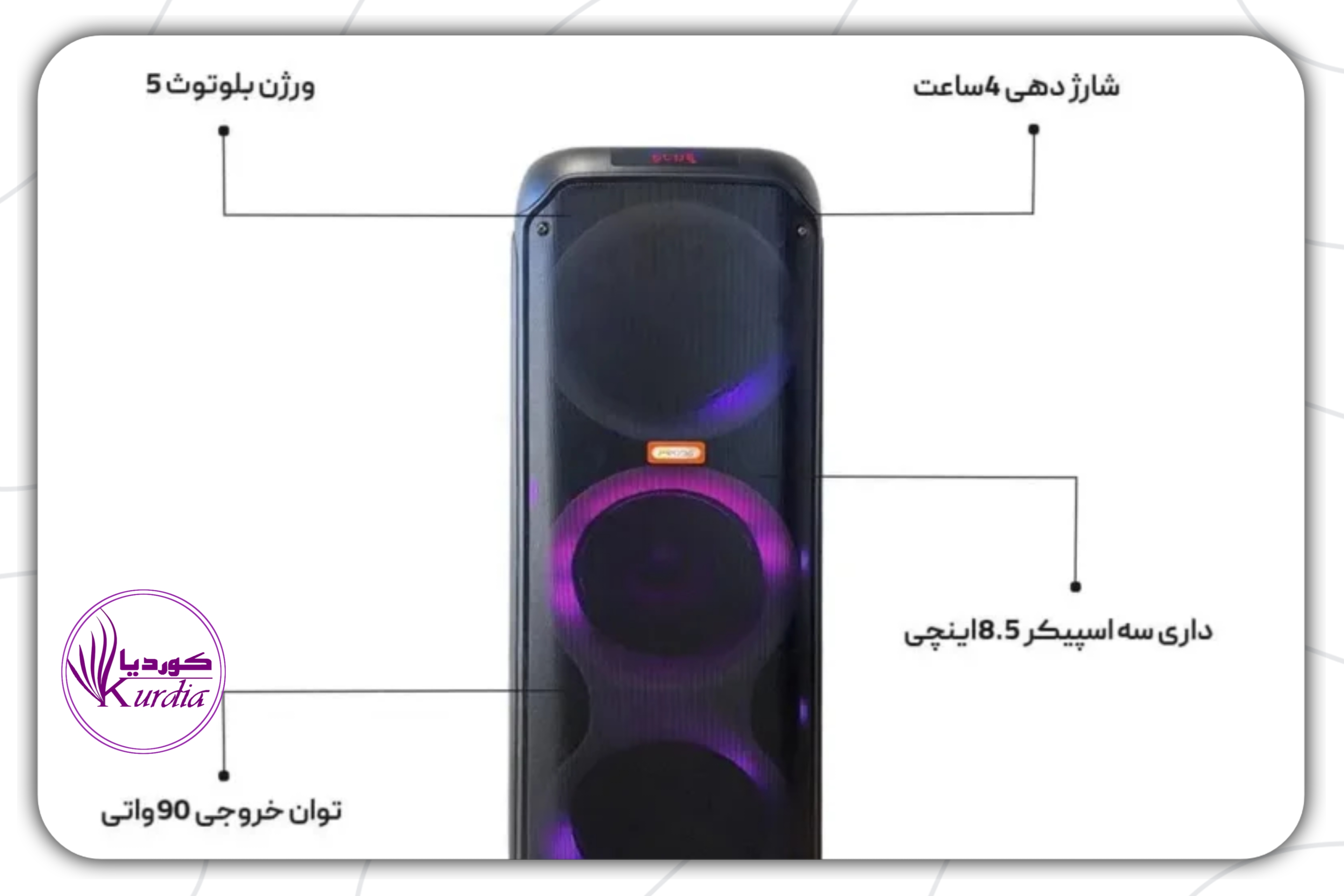 قدرت خروجی: ۹۰ وات که برای فضاهای متوسط مناسب است.