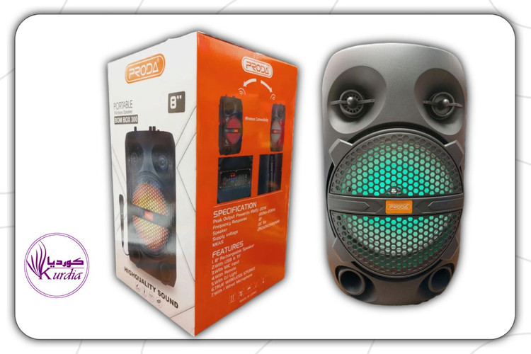 اسپیکر بی سیم پرودا مدل Proda Bom Box 300 یک اسپیکر قدرتمند و سیستم صوتی قابل حمل برای مهمانی ها و تفریحات خانگی است. این مدل از اسپیکرها به ویژه برای تفریحات جشن ها و مهمانی ها طراحی شده و دارای ویژگی های جذابی است.