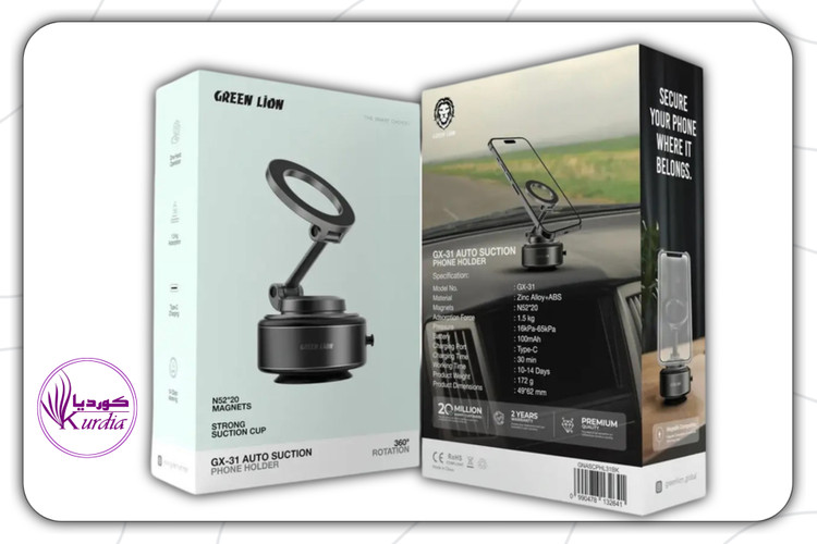 نگهدارنده تلفن مکش خودکار Green Lion GX-31 – مشکی مات یک پایه ماشین مغناطیسی ممتاز است که از آلیاژ روی سنگین و ABS ساخته شده است و دارای آهنرباهای قوی N52*20 با نیروی جذب 1.5 کیلوگرمی برای گرفتن محکم گوشی شما است. مکش خودکار آن با فشار 16kPa – 65kPa برای افزایش پایداری در سطوح مختلف ارائه می شود. کار با یک دست، نصب و جدا کردن را آسان می کند. باتری 100 میلی آمپر ساعتی که از شارژ نوع C پشتیبانی می کند و شارژ فوق سریع 30 دقیقه ای را برای 10 تا 14 روز استفاده فراهم می کند. برای رانندگی بدون هندز، تماس و تجربه رانندگی دلپذیر ایده آل است.