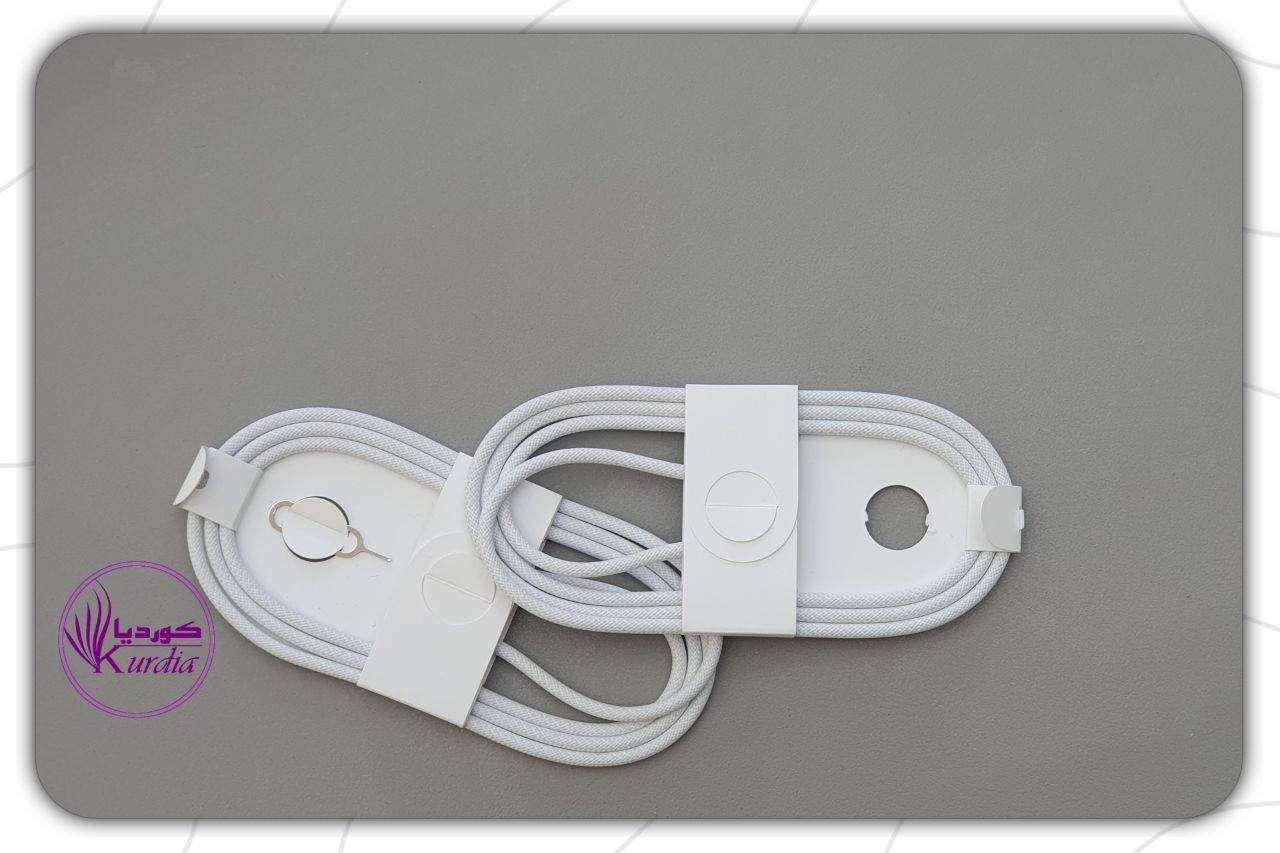 کابل شارژ دو سر تایپ سی ایفون 16 در ظاهری جدید و از جنس رویه کنفی داخل جعبه گوشی ایفون 16 ، 16پرو و ایفون 16 پرومکس قرار گرفت.
