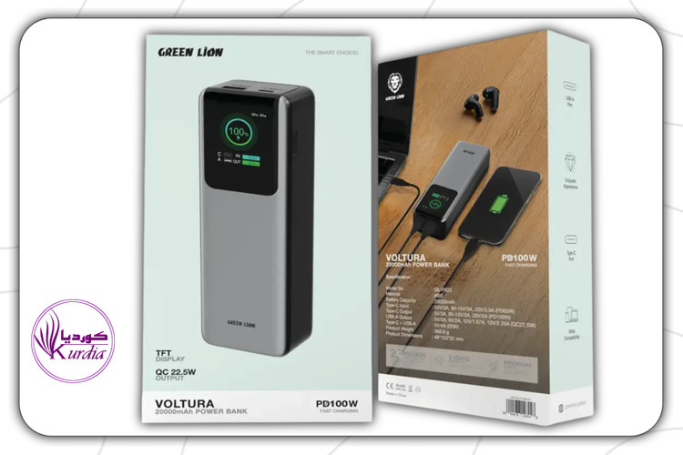 پاوربانک ۲۰۰۰۰ گرین 100 وات لاین مدل Voltura