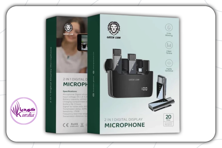 میکروفون یقهای بیسیم گرین لاین مدل GN2IN1DDMTCBK 2in1 با رابط Type-C ارائه شده و از ارتباط بیسیم با محدوده عملکرد بین 20 تا 30 متر بدون مانع پشتیبانی میکنه. فرکانس پاسخگویی این میکروفون تو بازه 20 تا 20000 هرتز و حساسیتش 75 دسیبل با نسبت سیگنال به نویز (SNR) 64 دسیبل و تأخیر در انتقال صدا در این محصول حدود 30 میلیثانیه هستش.