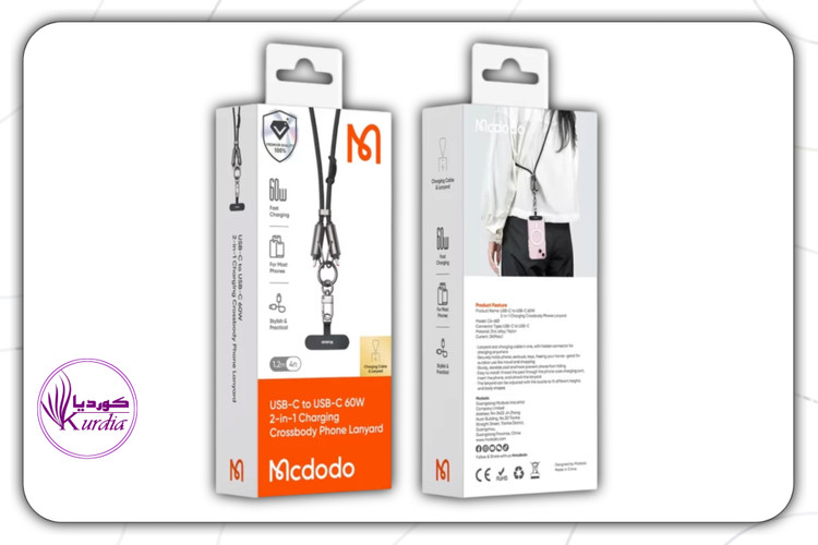 کابل شارژ دو سر تایپ سی و بند آویز 60وات مک دودو مدل CA-683 تلفن شما را به خوبی نگه میدارد و دستان شما را برای استفاده در فضای باز مانند مسافرت و خرید آزاد میکند همچنین به آسانی به حالت شارژر تبدیل میشود تا نیازی به کابل و سیم اضافه نداشته باشید. طول آن حدود 120 سانتی متر میشود و طناب را میتوانید با کمک سگک تنظیم کنید.