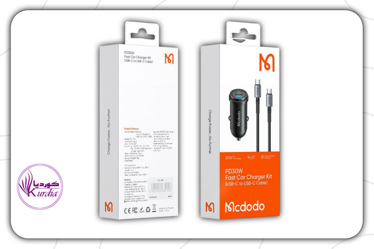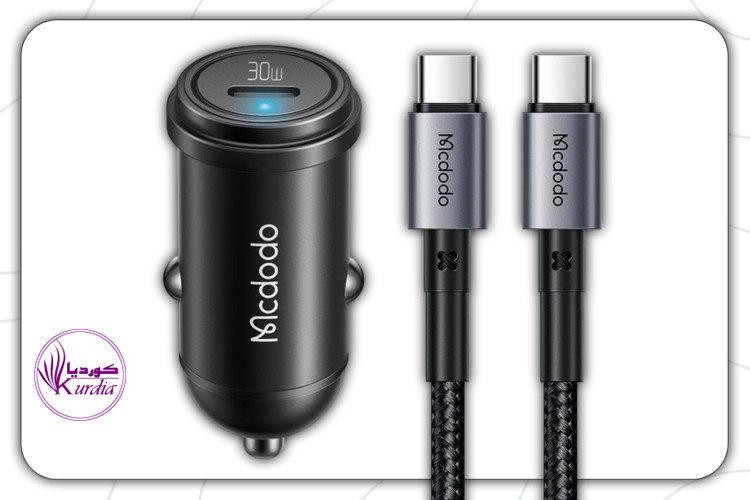 شارژر فندکی 30 وات مک دودو مدل MCDODO CC-7493 بهمراه کابل شارژ دو سرتایپ سی